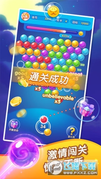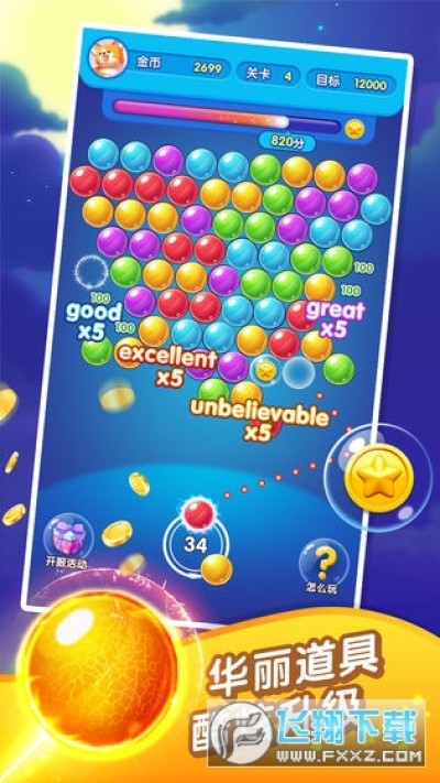 3.随时随地畅游其中,创新式的泡泡龙消除体验打发掉你的无聊时间。