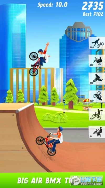 《空气动力小轮车 Max Air BMX》是一款模拟山地自行车驾驶的游戏,玩家可以升级改装自己的自行车,有很多炫酷的招式和动作都可以使用,玩家要驾驶自己的自行车穿越更多赛道和艰难的地方,成为厉害的自行车骑手!
