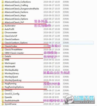 我装了一些常用插件和我喜欢的插件,如果你AddOns文件夹下是和以下图中类似的文件名那恭喜你就安装好了.重新进客户端就可以 了.