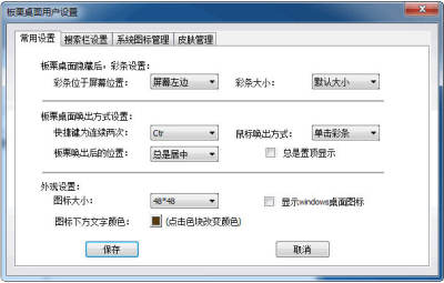 如果想要多选操作或拖动文件到其它程序中,点击最后一 行的“打开windows桌面”图标自己可以设置左边彩条是否可见,在屏幕左边还是顶部或 右边,图标大小,图标下文字颜色等等。设置方法:鼠标 悬停在第一行板栗logo上,弹出菜单中选“软件设置”