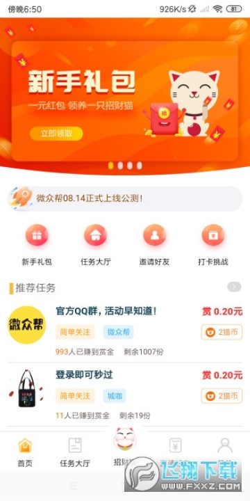 1、新用户下载微众帮完成简单的新手任务就能获得1元现金奖励