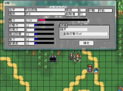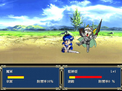 (2)骑士:具有攻击力及防止御力的种族,攻击力、体力、防御力都很高,但因盔甲很重,移动力值很低。