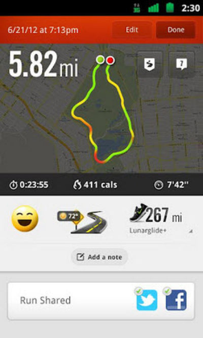 - 还需要特别的激励吗? 在你手机的主页屏幕上添加一个小插件,显示你上次跑步的时间和总里程,并快速启用跑步功能。
