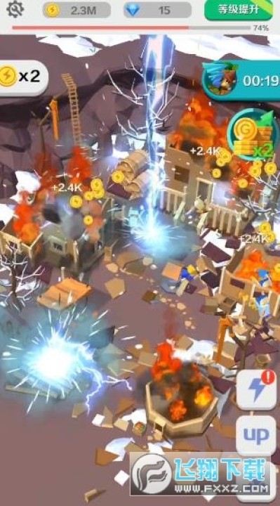 上帝疯狂了,是一款魔性点击放置游戏。在这里玩家不断召唤雷电来打击房屋赚取金币,还有双倍金币BUG等你点击,得来的金币可以提升等级,让你的收益轻松翻倍。