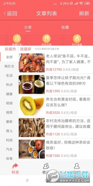 1、资讯分享,奖励领不停,分享阅读每次0.6元。