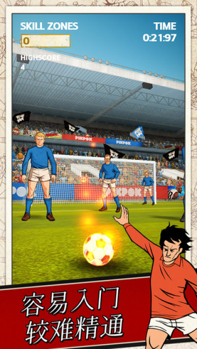 手指任意球是一款玩法类似丢纸团的小游戏,无非就是把游戏形式变成了用脚踢足球。该游戏易上手难精通,属于百玩不厌的游戏。踢球的角度、速度、弧度都由你手指的一次滑动控制,通过曲线滑动还能踢出刁钻的香蕉球落叶球。