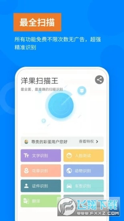 洋果扫描王是一款集图片转文字识别,手写文字扫描,文档扫描,植物识别,花草识别,动物识别,车型识别,颜值评分,颜值pk等功能于一身的全能扫描王。