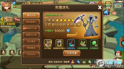 礼包内容:钻石*200,稀有强化石*5,金币抽取券*3,60体力*3,扫荡券*10