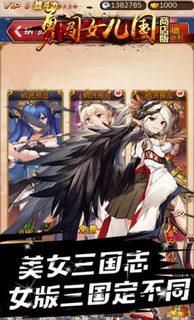 勇闯女儿国BT商城版是一款非常好玩的三国策略养成手游游戏将三国元素和二次元元素相结合,提供丰富的名将英雄收集,养成,玩家可以自由搭配阵容来激战!喜欢的小伙伴赶紧来下载吧!