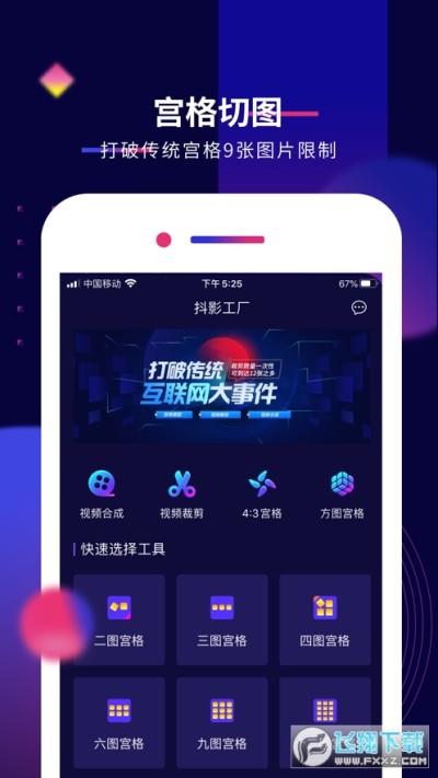 抖影工厂App是一款操作简单、方便快捷的剪辑工具,有便捷的宫格切图、迅速的视频分割、更有视频与封面的快速合成等功能,将给你带来不一样的操作体验!