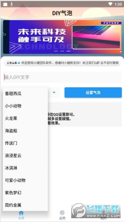3、输入要DIY的气泡文字,前往QQ设置即可,各种气泡样式等你选择!