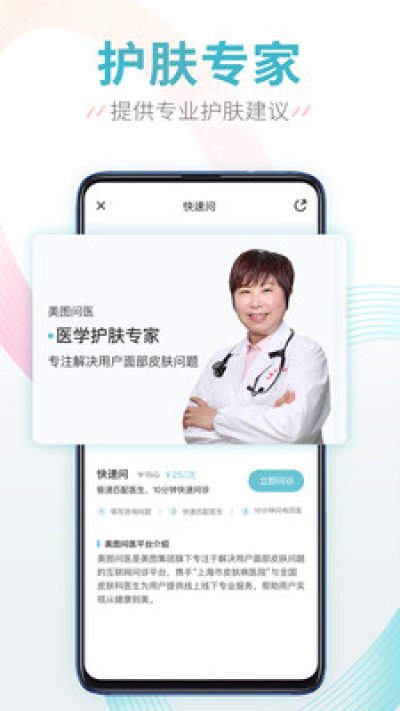 1、“美图问医”是给爱美用户专用的APP,若您是可以给平台提供问诊服务的皮肤科医生,请搜索“美图问医-医生版”APP下载使用;