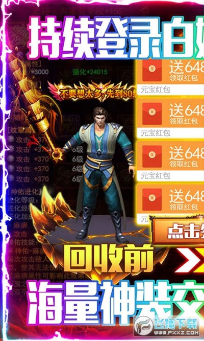《龙城秘境送648充值白嫖版》是一款礼包丰厚的手机传奇类游戏。这款传奇游戏的礼包丰厚,以超多的豪华礼包可以免费领取。玩家登录游戏即可领取648元的免费充值卡,还有高级武器、转生装备、等级直升等精彩内容,此次小编给大家带来的是《龙城秘境送648充值白嫖版》的下载,感兴趣的赶紧下载体验吧!