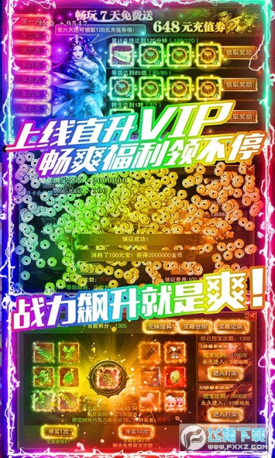 《龙城秘境送648充值》福利领取方式:进入游戏后跟着主线提升至20级,点击“白漂648”按钮即可参与。只需要根据说明,每日完成相关条件,即可轻松获得累计648元的充值卡!充值卡使用后可获得相应的元宝,提升VIP经验,但是无法激活首充也无法参与游戏内的累充活动。登录就送VIP5,超多VIP特权免费享受。7天登录仙袂法神、苍月法神、5转衣服、3转武器等超多豪礼等你来拿。参与白漂活动,除了可以累积领取648充值卡让您畅享海量元宝红包外,更有高转生装备箱免费领取,助力升战,让你赢在起跑线上!还有元宝BOSS活动,每日刷BOSS拿元宝,让你盆满钵满,元宝多到用不完。