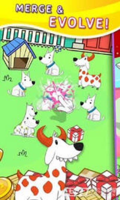《狗狗的进化Dog Evolution》是一款狗狗题材的养成游戏。在游戏中玩家要通过培育各种狗狗来获取金币,还能通过两只相同阶段的狗狗进行合成,繁衍出新品种!赚取更多的金钱,合成到一定阶段还能解锁新场景以及稀有品种狗