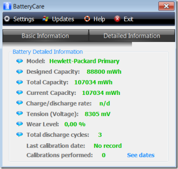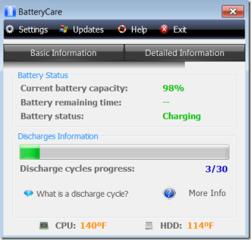 BatteryCare比内置的Windows电池监控功能要优秀点。 它随时间变化提供了更多关于电池的信息,如充电周期的统计,以及当前电池还有多少电。 如果你每天都在使用笔记本的电池,这个软件是值得下载的。