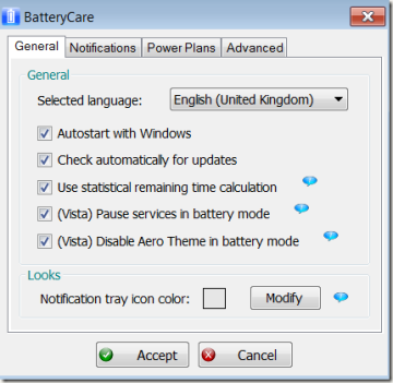 一般设置大多自己已经设置好了,如随系统一起启动,并且还增加了禁用Vista系统的 Aero主题的设置(Windows 7系统也有),并暂停服务。 这可以延长电池至少几分钟的使用时间。
