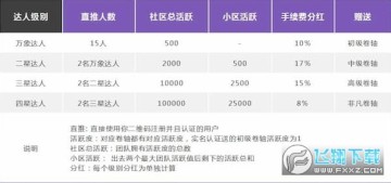 达人级别 直推人数 有效推荐数 (大于等于1) 团队总活跃度 小区活跃度 全球手续费分红 赠送