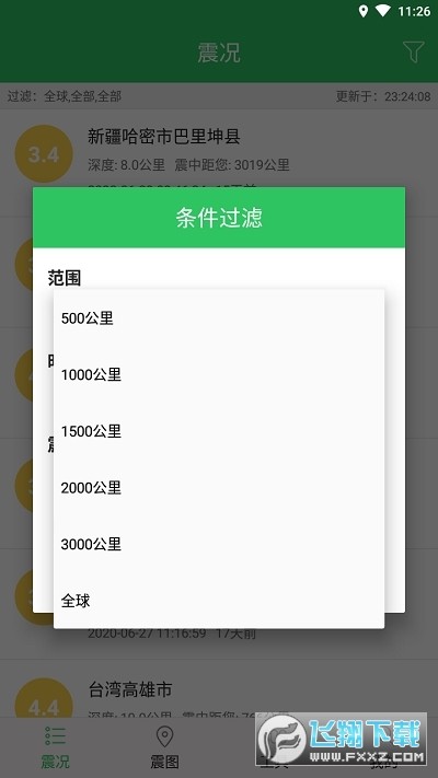 地震范围条件过滤