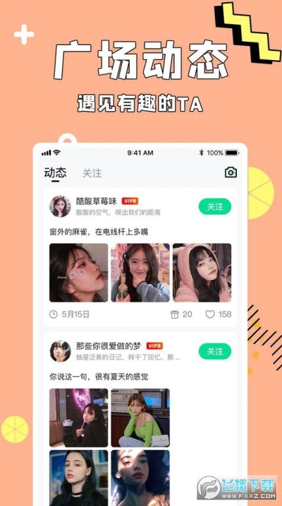 滚动式动态,随时随地通过文字、图片、视频,了解最有趣的Ta,让灵魂从孤单中脱离出来!方便快捷的互动玩法,感受温情的人文社区新体验。