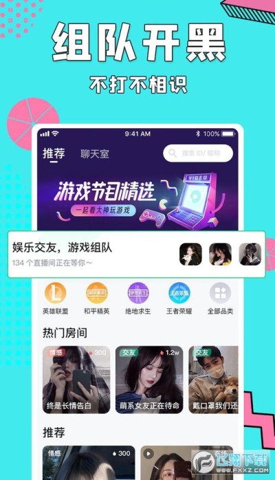 各类娱乐频道、陪练约玩、聊天交友,KTV、情感交流等多元素的频道分类,总有一个版块属于你——娱乐不是一个人的自嗨,而是一群人的狂欢!