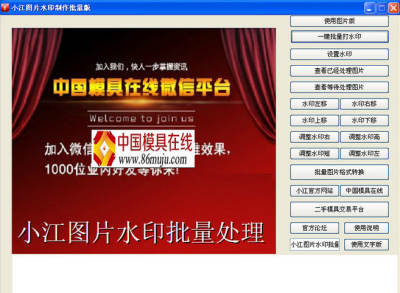 小江图片水印制作批量版是一款可以不改变文件位置情况下,批量添加水印的工具,软件体积迷你,绿色面按照,草走简单,一键处理,效果显著!