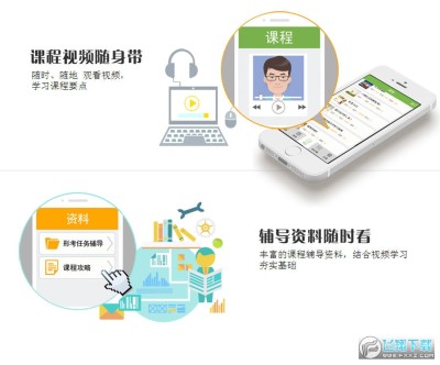 3、课程随身带,辅导资料随时看,形考作业手机做,消息通知简单、快捷!
