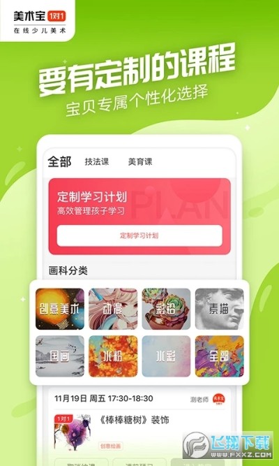 美术宝1对1app应用宝版软件可以为不同层次的儿童定制独家课程,让孩子有更独家的个性化选择,因材施教,充分发挥儿童的绘画天赋和艺术细胞。在每门课程结束时,孩子和家长也可以对课堂进行评价,评价内容可以实时反馈给老师,帮助老师优化教学计划。