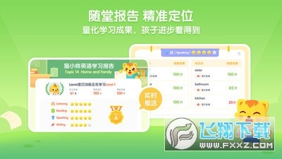 随堂生成英语学习报告,精准定位孩子学习问题,帮助孩子学得更好;实时推送至家长微信,随时随地了解孩子学习情况,全面掌握孩子学习轨迹。