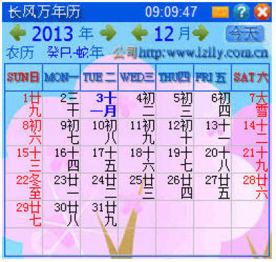 长风万年历是一款非常简单而且界面美观小巧的电脑万年历工具,可直接运行,使用非常方便。