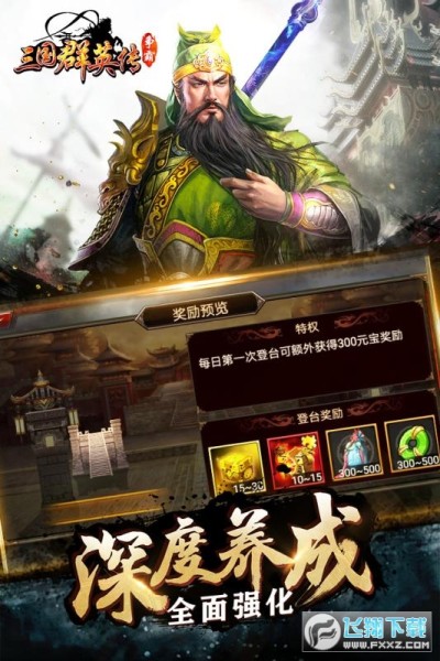 《三国群英传-争霸》擂台赛盛大来袭!全新的PVP玩法,即将拉开序幕!群雄逐鹿谁与争锋,擂台之上一见分晓!同时更有全新的福利功能铜雀台,助君备战擂台赛。《三国群英传》全新玩法等你来战,狭路相逢勇者胜! 【劲爆福利,燃爆金秋】 万千元宝随意送,七天送橙将,刘备、小乔、荀彧、华佗三国四大辅助任选其一。两周再送超稀有红将,神兵天降战力飙升,率武神关羽狂扫一方!