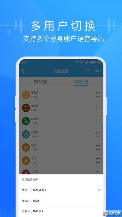 有多个账号也不用担心,语音导出软件都帮你想到了,只需将账号切换为想要导出的账号即可,操作简单快捷!