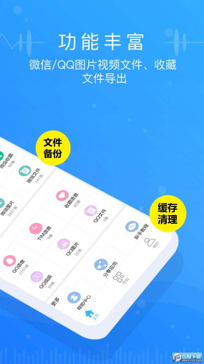 【文件备份与清理】重要文件支持备份导出,避免微信清理时误删。垃圾文件支持删除操作,节约手机空间。