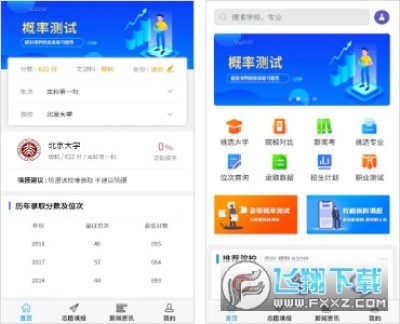 可查询全国2700+所院校在不同省份的招生预测分数线和名次线,基于高考大数据与人工智能算法进行特定学校与专业的分数线、排位线估计,评估考生录取概率。