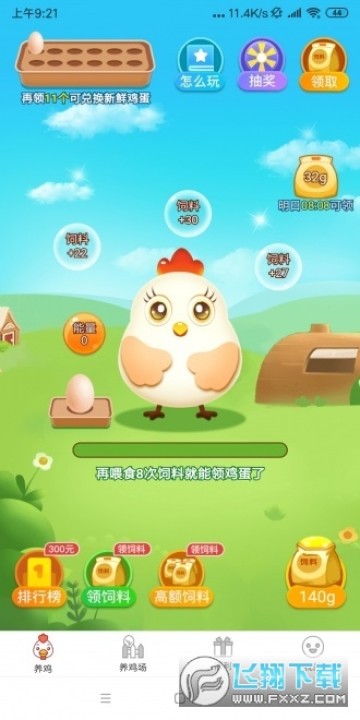 3、给小鸡们喂养饲料保障健康成长,通过售卖即可活动的丰富的收益;