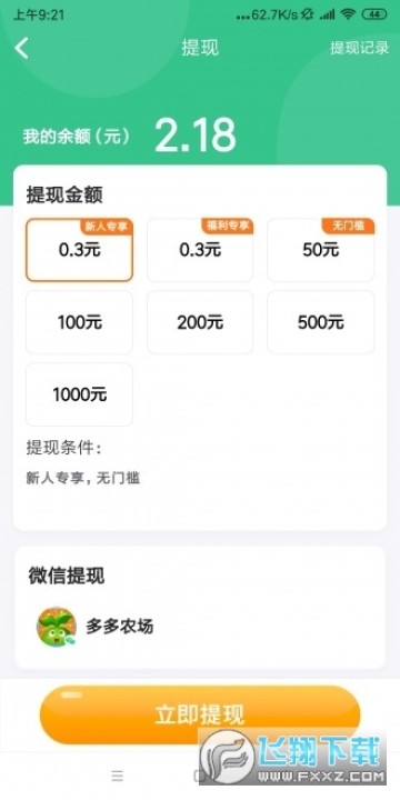 1、新人下载就送2元左右的新人红包,其中可以直接提现0.3元到微信秒到