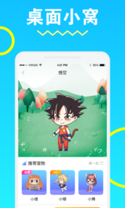 把自己喜欢的人物养在手机桌面也是一种乐趣,更有每个角色的精美海报推荐。每个角色都有自己独特的动作,各种细节刻画的栩栩如生。会卖萌随机互动,上下跳动和爬墙,左右走动。丰富动作,花样玩法。