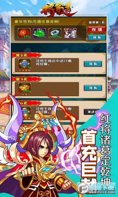 单日充值2000元:神将自选包*2,进阶丹*2000,四级结晶礼包*2,佛跳墙*30
