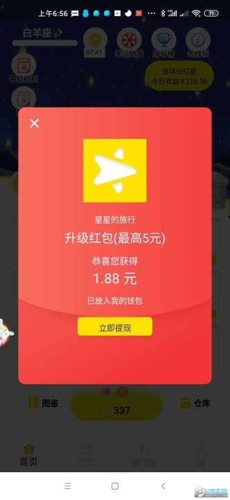 新人下载将星球合成到5级可得一个新人红包,红包奖励在2元左右,