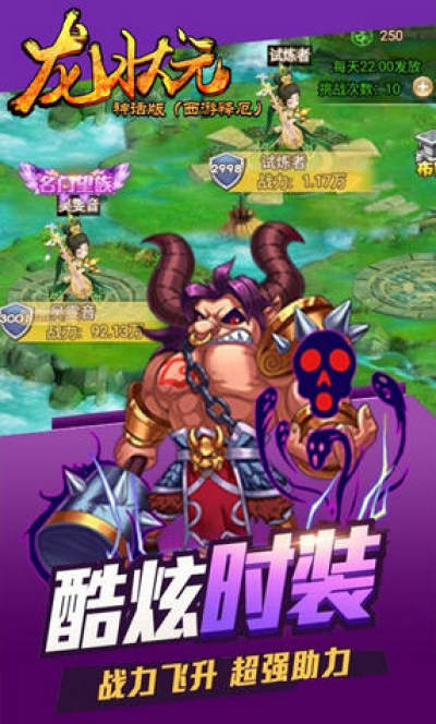上线送v20直接满v,送250000元宝抽将抽不停,每天免费领取元宝。《龙状元神话版》(西游释厄)是全新首款历史神话题材手游,带给你最真实、最直观的战争感受!Q萌的卡牌,可以跨服PK。画面超赞,运行流畅! 全明星修仙阵容,好玩根本停不下来!以中国神话为背景,“修仙证道”为主题,融汇了西游记、封神榜、八仙过海等神话巨著,渲染出一幅规模宏大的东方神话世界。