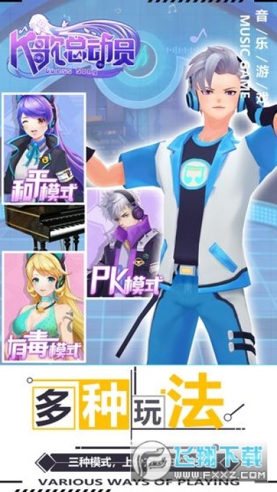 《K歌总动员手机版》是一款音乐手游,竖屏的画面,二次元的人物角色,多种玩法模式满足不同的玩家需求,根据音乐的节奏进行跳跃,努力完成关卡的对决,获胜赢取奖励,解锁更多绚丽的皮肤,更多精彩赶快下载吧!