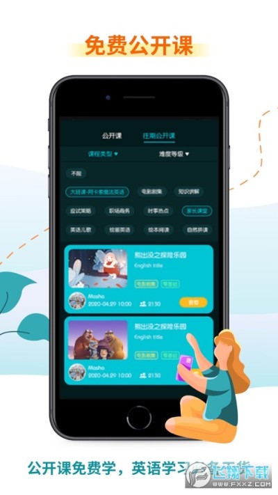 我们增加了公开课功能,针对3-15岁少儿定制彩虹英语、儿歌、绘本、自然拼读等优质内容,且全部免费开放,您只需要在APP内报名即可;无限回放:课程期限内无限次回放,直到完全听懂为止。