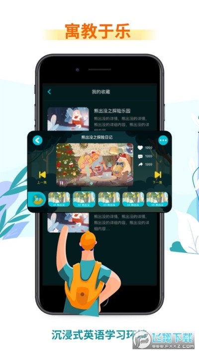 通过AI人工智能推荐,海量英语动画视频,”磨耳朵”式英语儿歌,真人在线外教上课,提供一个全真英语学习环境,让孩子爱上学英语说英语。