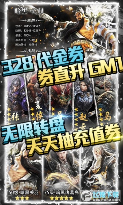 《斗战三国志送328充值》上线就送328代金券!在线直接送首充!登陆每天领海量元宝!《斗战三国志-送328充值》是一款纯做福利的游戏,每天在线领无限抽奖券可以每天抽真充券!游戏内更有独创的征战玩法让玩家互相攻打城池,还有单刀赴会,跨服争霸、官勋晋升、草船借箭等丰富且有趣的系统,让玩家百玩不厌,流连忘返!