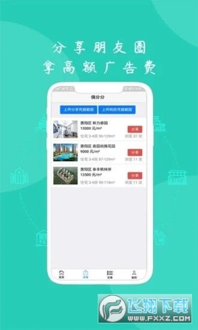 佣分分交易平台app连接开发商和购房者,用户可以自主看房买房,自己拿佣金,分享朋友圈还可以赚广告费!