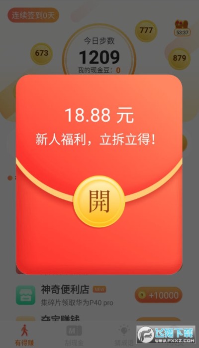 步赚宝app走路赚钱软件是一款每天走路步数就可以兑换现金红包的app哦,新用户在这里可以领取18.8的现金红包,还有各种赢红包的玩法,例如刮刮乐、猜成语等等,快来下载试试吧!