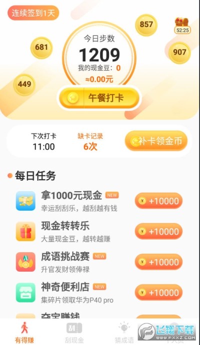 1、步数兑换金币,每天把运动步数兑换为金币,再将金币兑换为收益,即可提现