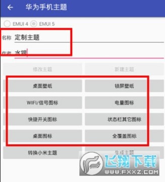3、输入主题的名称和作者名,就可以来编辑设置自己喜欢的主题图标了。