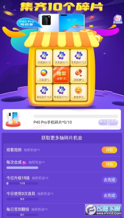 集满10个华为P40Pro碎片,即可兑换手机大奖,每个用户最多兑换一台,兑换成功后请填写联系方式,客服会在24小时内与您进行确认收货信息。
