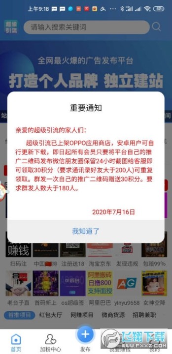 超级引流app是一个可以推广项目、获得流量的广告平台,不仅可以免费发布广告,还可以赚钱哦,如团队的话可以享受团队的分成收益,让你推广赚钱两不误,有需要的小伙伴们,赶快下载超级引流app体验一下吧。